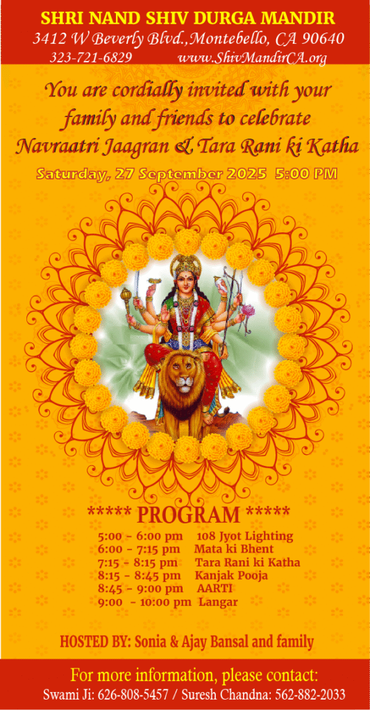 The following events are scheduled at “SHRI NAND SHIV DURGA MANDIR”