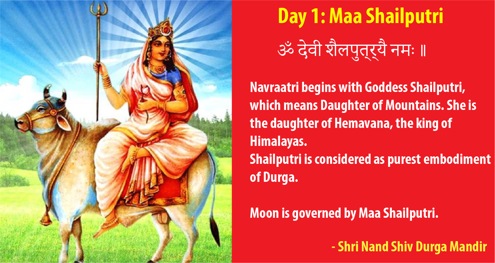 Navratri is a festival dedicated to worship Goddess Durga. In Sanskrit, the word ‘nava’ means nine and ‘ratri’ means nights i.e. ‘nine nights’. Each of these nine days of Navratri is dedicated to a particular Goddess who is worshiped on that day.